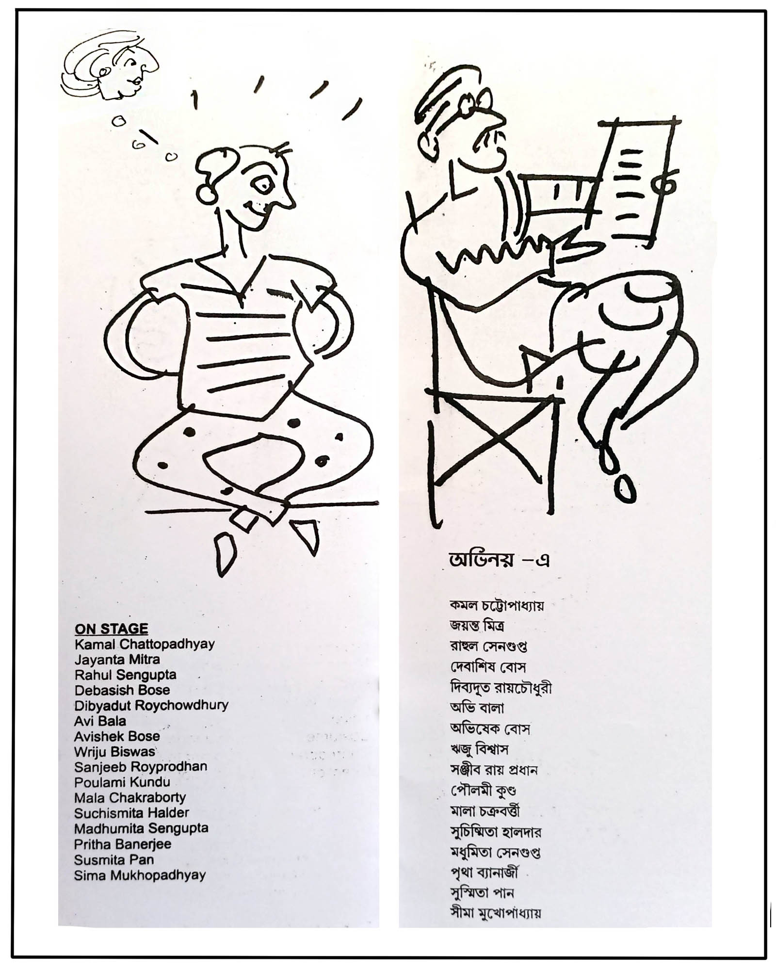 | Kamal Chattopadhyay, Jayanta Mitra, Rahul Sengupta, Debasish Bose, Dibyadoot Roychowdhury, Debasis Chattapadhyay, Siddhartha Chakraborty, Arkopol Talukdar, Mala Chakraborty, Suchismita Halder, Madhumita Sengupta, Pritha Bandyopadhyay, Susmita Pan, Mamata Banerjee, Sima Mukhopadhyay |