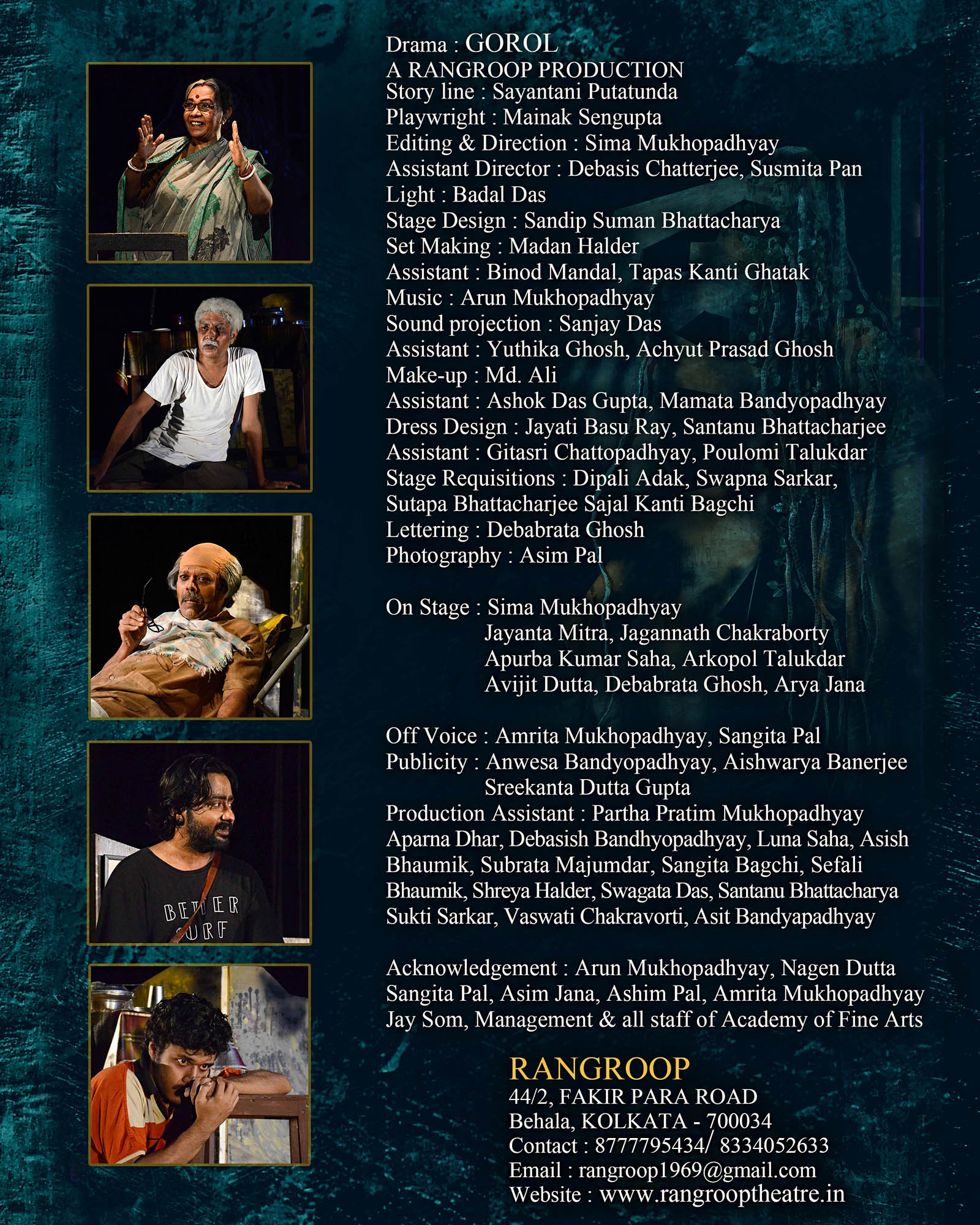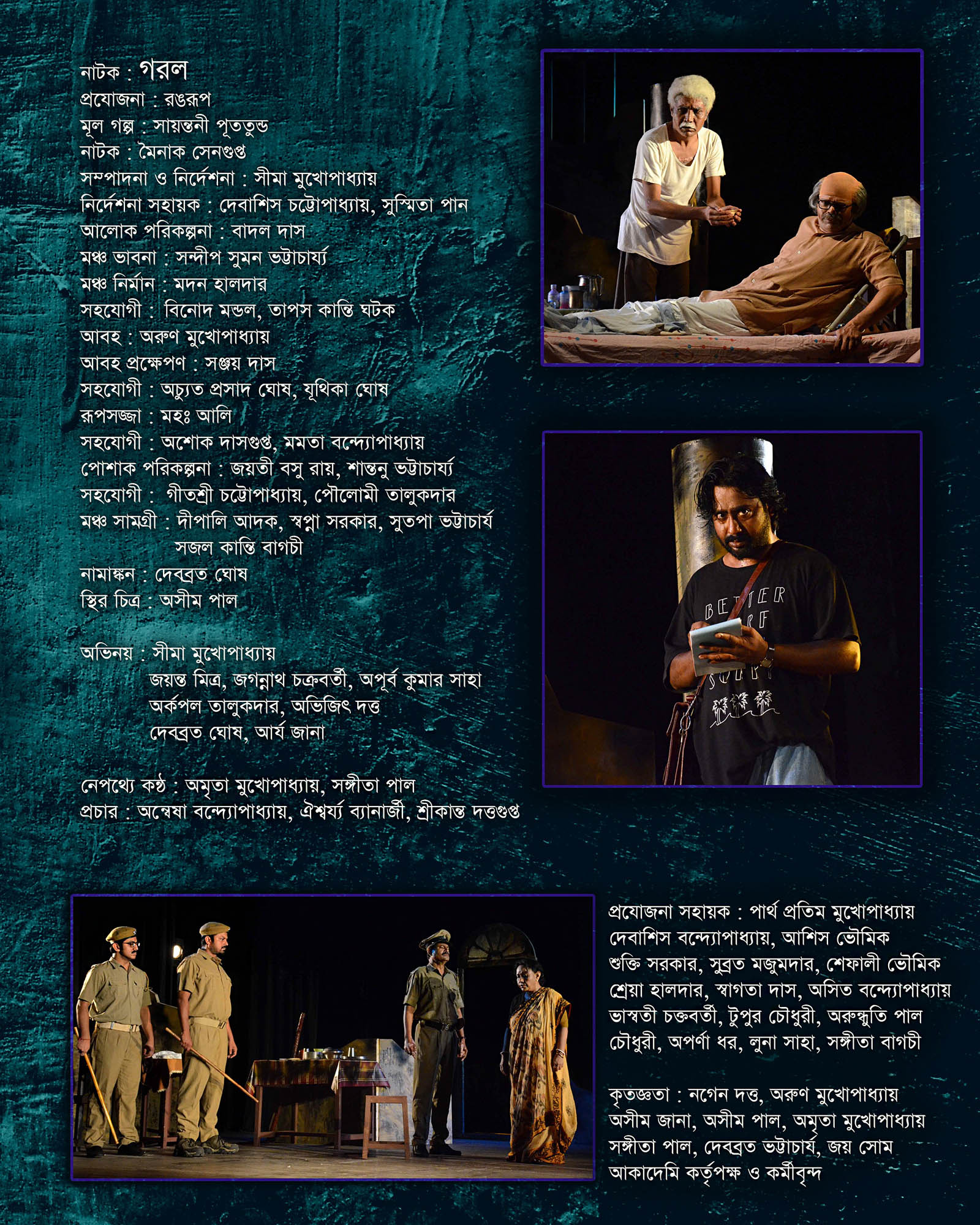 | Cast: Sima Mukhopadhyay, Debasish Chatterjee / Jayanta Mitra, Jagannath Chakraborty, Arkopal Talukdar, Apurba Kumar Saha, Avijit Dutta, Arya Jana, Debabrata Ghosh. |