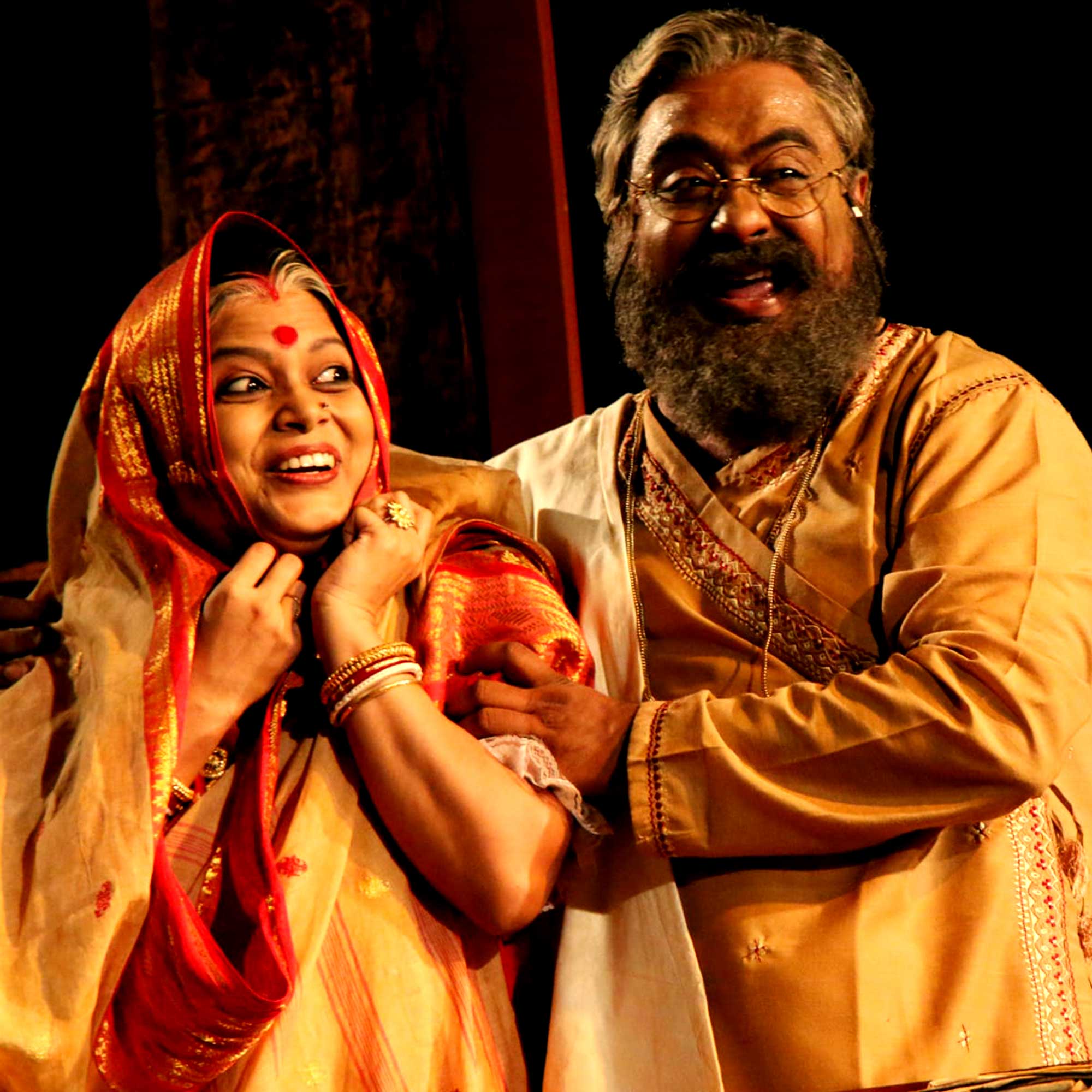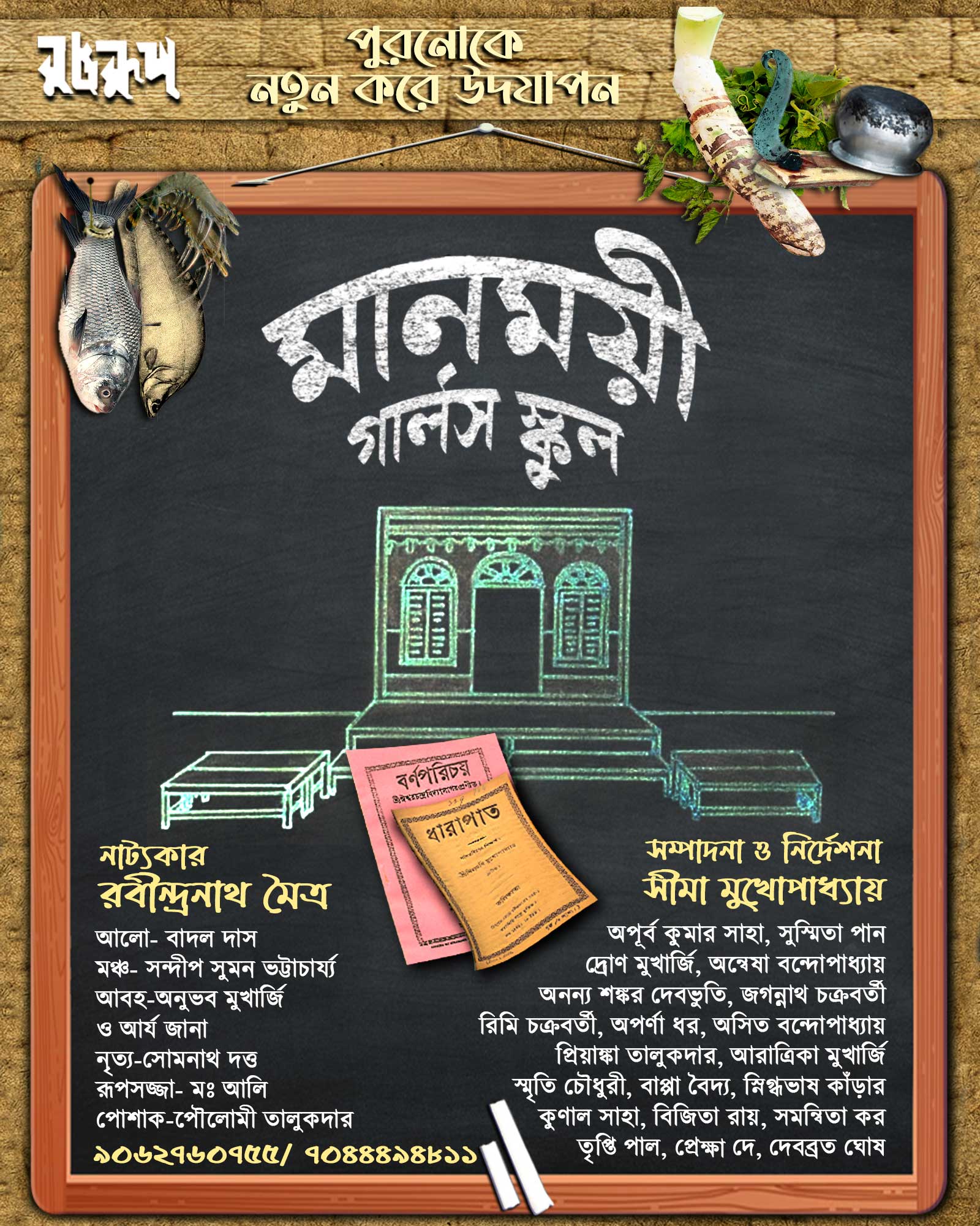 Once it was decided to stage the plays of yesteryears again, as part of a celebration of the completion of the 150th year of Bengal drama, Rangroop decided to perform “Manmoyee Girls’ School” scripted by late Rabindranath Mitra. This play was first performed on 26th December 1932 at Star Theatre. The play depicts a different kind of a society, men and women, their love stories; and related conspiracies. The olden time explored is not comparable with our times. We have chosen this production so as to reach out our past, experience the people, their speech patterns, their love relations and rejections, their adornments and more. While working anew on the play, we realized, it was not easy to portray in the present time the simplicity of the characters and their behaviour that was prevalent in those days. It is all hard work and the manifold happiness that it generated. We are now ready to share the treasures of the good old days with all of you.