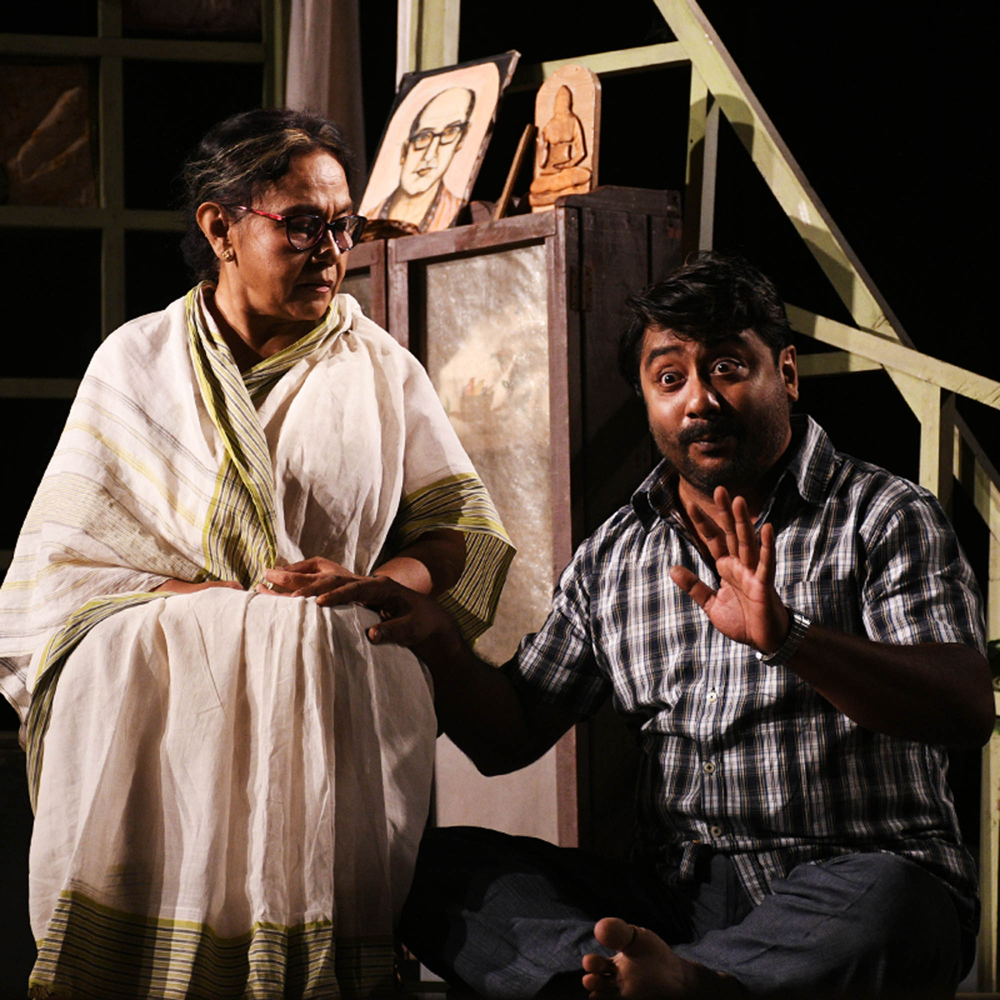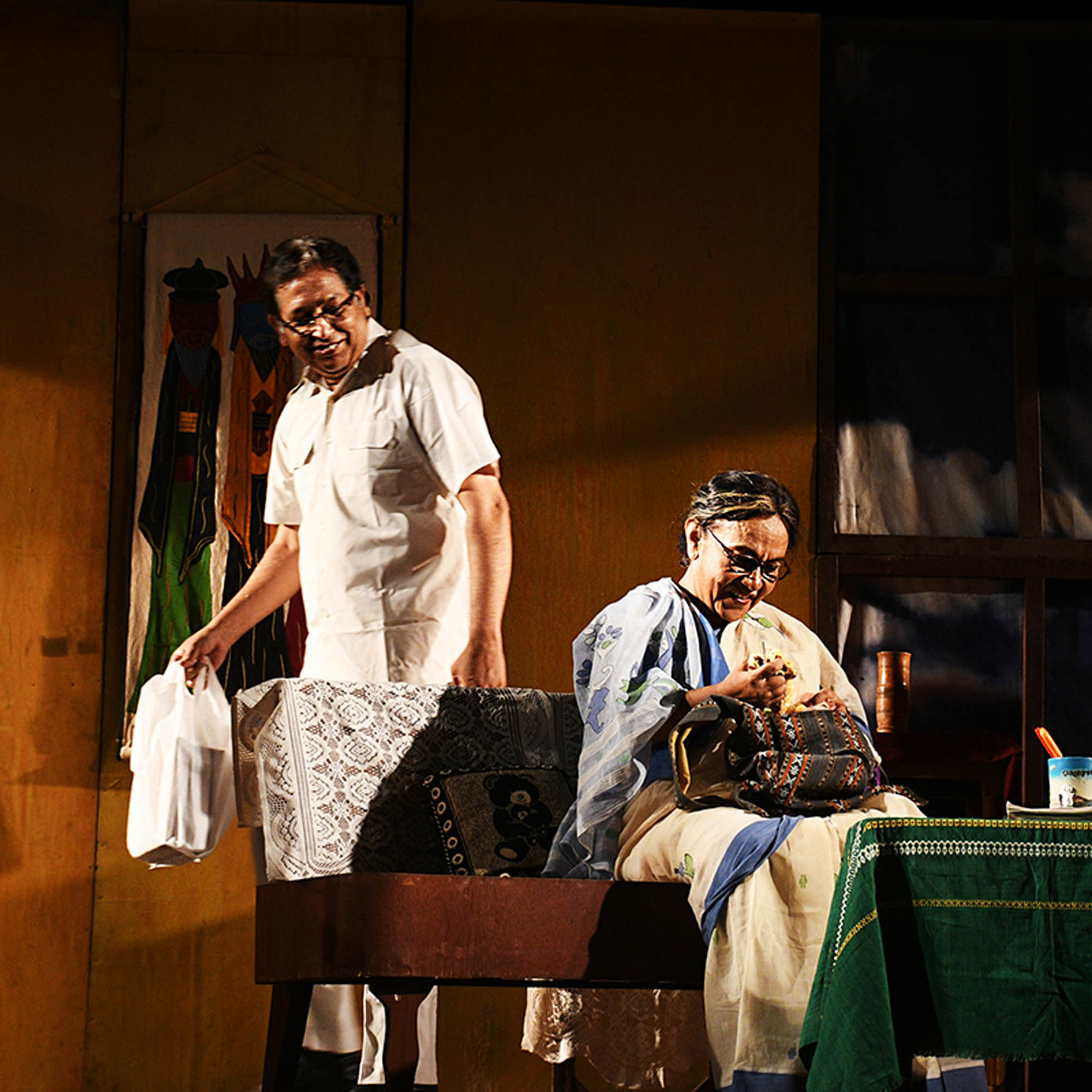 The youngest brother Priyobroto, less affluent of the three, is unpolpular for his indecent manners. The Play unfolds the complex relationships between the siblings and the changing equations with their mother Nalini.