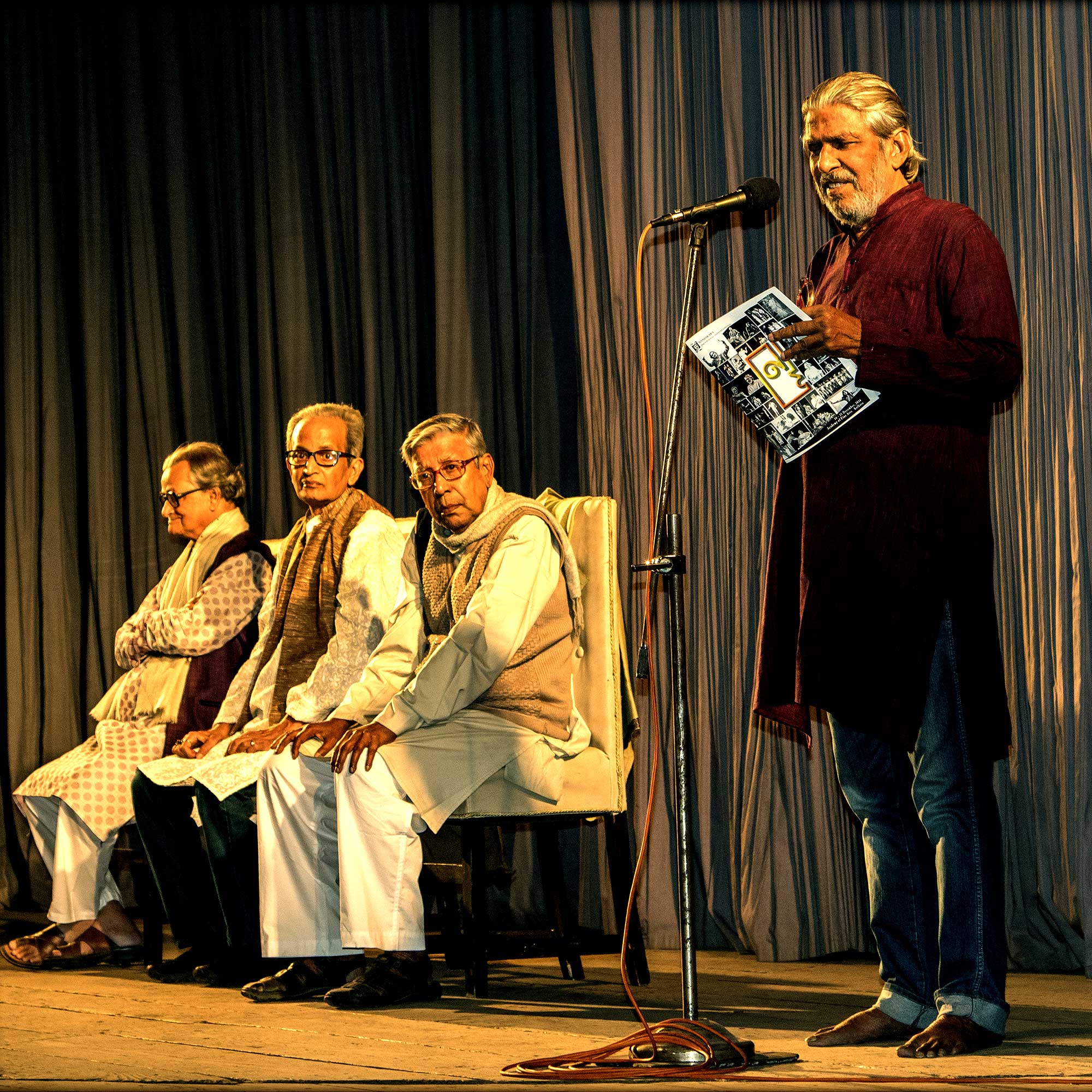 এইরকম একটা দমবন্ধ অবস্থায় থিয়েটার আমাদের কাছে টাট্কা বাতাসের মত, বেঁচে থাকার রসদ, কারণ এখানে আমি একা নই, আমরা একসঙ্গে বহুজন একই লক্ষ্যে পথ চলি। তাই রবীন্দ্রনাথের প্রার্থনার সঙ্গে গলা মিলিয়র আমাদেরও একান্ত প্রার্থনা— সত্যবানীকে কাঁধে ঝুলিয়ে জয়ঢাক করে তাকে যেন বাজিয়ে না বেড়াই, বাইরের লোককে চমক লাগাবার জন্য যেন তাকে অলঙ্কারমাত্র না করি, যেন নিজেরই একান্ত আন্তরিক প্রয়োজনের জন্যেই তার সন্ধান ও সাধনা করতে পারি।
