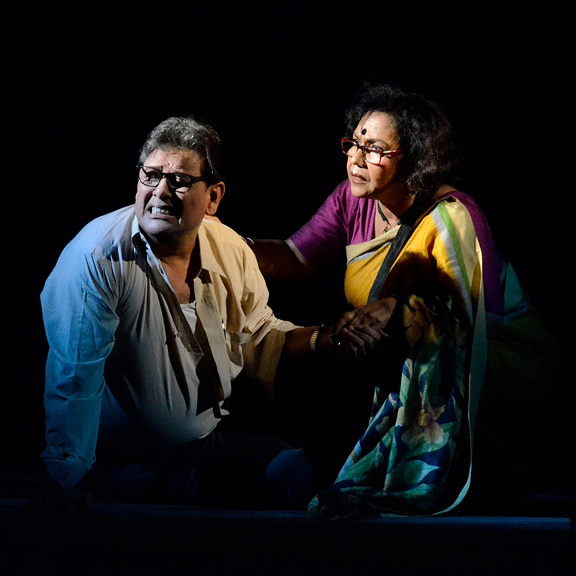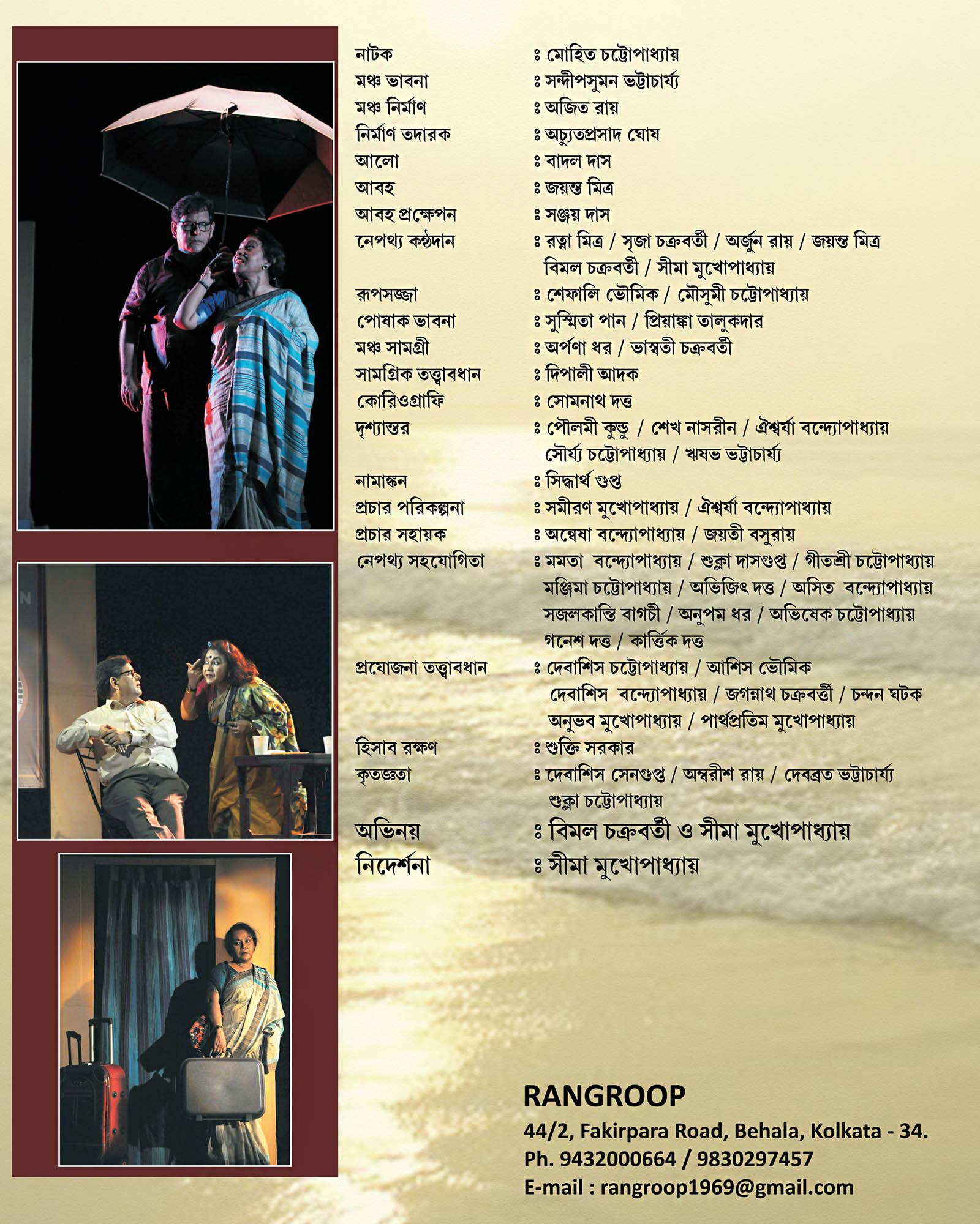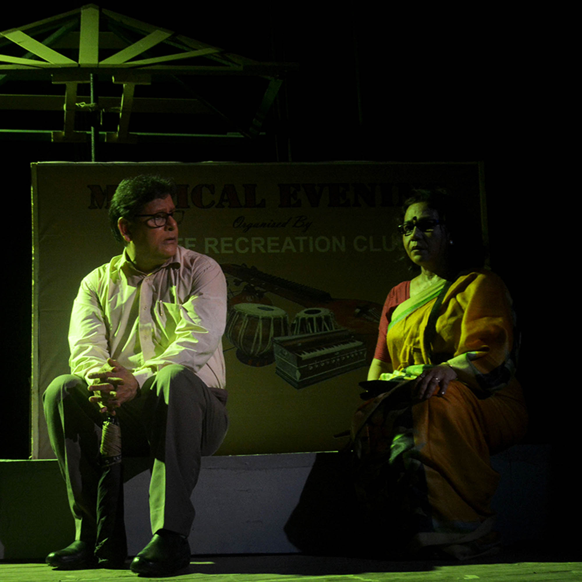 There's an inherent poetic appeal in Mohit-da's Plays. The emotion strangled to sensitive poetry. Reading his works is intoxicating. We felt the same while working on " Maayer Moto" and "Nil Ronger Ghora”. As his plays are images keep popping up which need to be integrated in the form of a stage version. I have seen "Takhon Bikel" staged by Gandhar. We had Asit Mukhopadhyay as our teacher when we ventured "Bhomma" (Uncle Vayna of Chekhov). What a natural teacher he was, completely at ease with his puplis. On the annual foundation day of Rangroop when we decided to play a tribute to both Mohit Chattopadhyay and Asit Mukhopadhyay, "Takhon Bikel" was the obvious choice. On behalf of Rangroop I humbly dedicate this production in found remembrance. "Takhon Bikel" (The Twilight Hour) is relevant, now and always. The speed of contemporary time with all its ferocity, lovelessness, broken relationships and more has entrapped two elderly human entities. They defy the ravages of time, break rules, enter a new relationship, nurture dreams, shine bright with a sense of freedom and start living life with a new-found zeal.